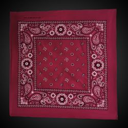 Burgundy 22" x 22" Cotton Paisley BandanasPriced per bandana but please order in increments of 1 dozen.