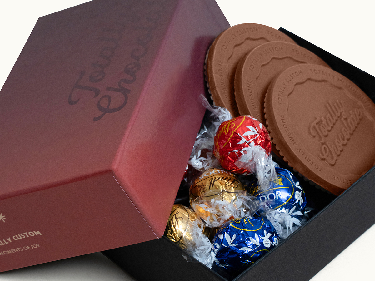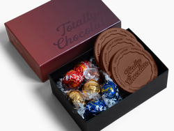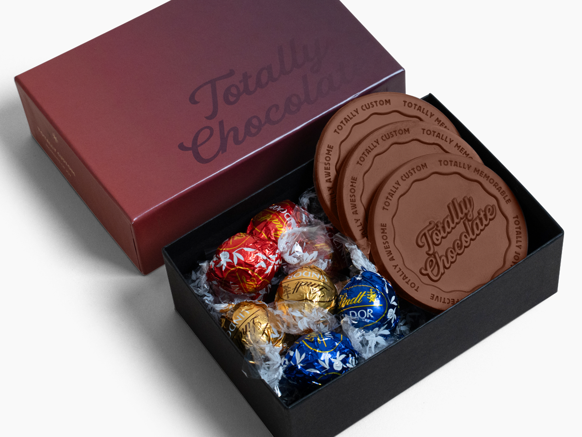 Experience the perfect blend of comfort and craftsmanship with our Truffles & Cookies Gift Box. This elegant collection includes six individually wrapped Lindor truffles, two each of milk, dark, and white chocolate, paired with three custom engraved cookies. Nestled in fully custom packaging, it's a thoughtful, indulgent gift that delights with every bite and showcases your brand in the sweetest way.