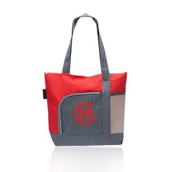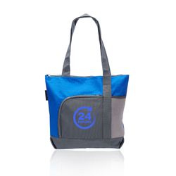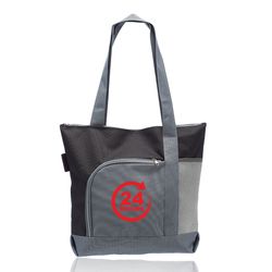 Carry your brand around with this stylish tote bag! Made from a 600 denier polyester canvas, this two-tone zippered tote measures 16.5" x 14.5" with a 4.5" gusset. Both durable and reusable, this practical tote features 27.75"x1.5" reinforced straps, a front 8"x 8" zipper pocket, a large capacity pocket, a pen loop and an air mesh front pocket. Available in multiple colors, customize this bag with a silkscreen imprint for brand awareness. Make this bag a regular part of your marketing campaign!