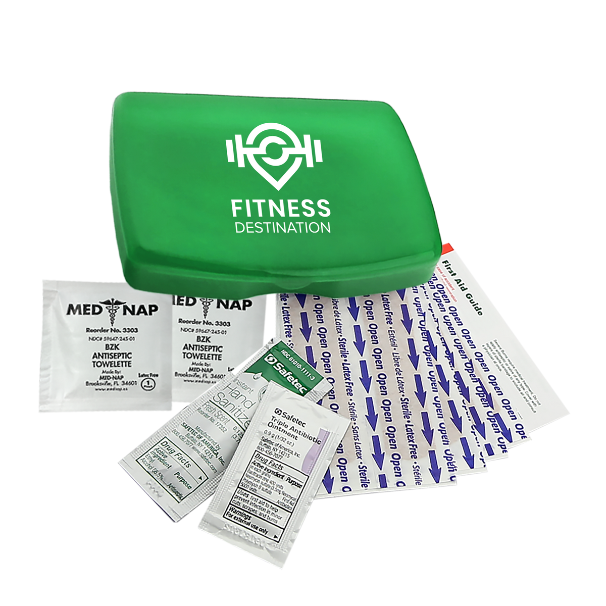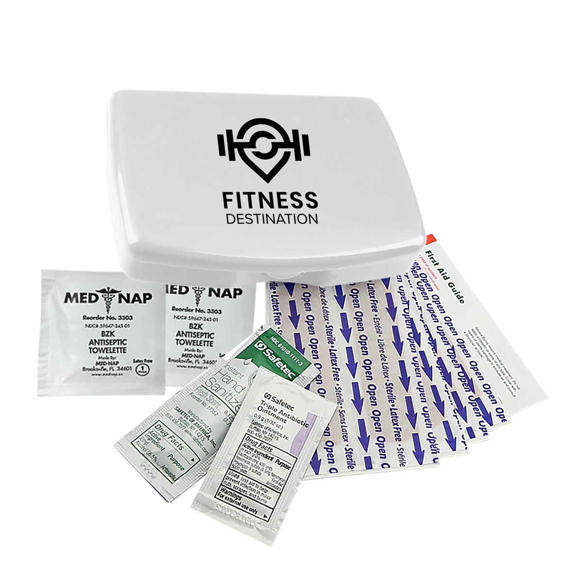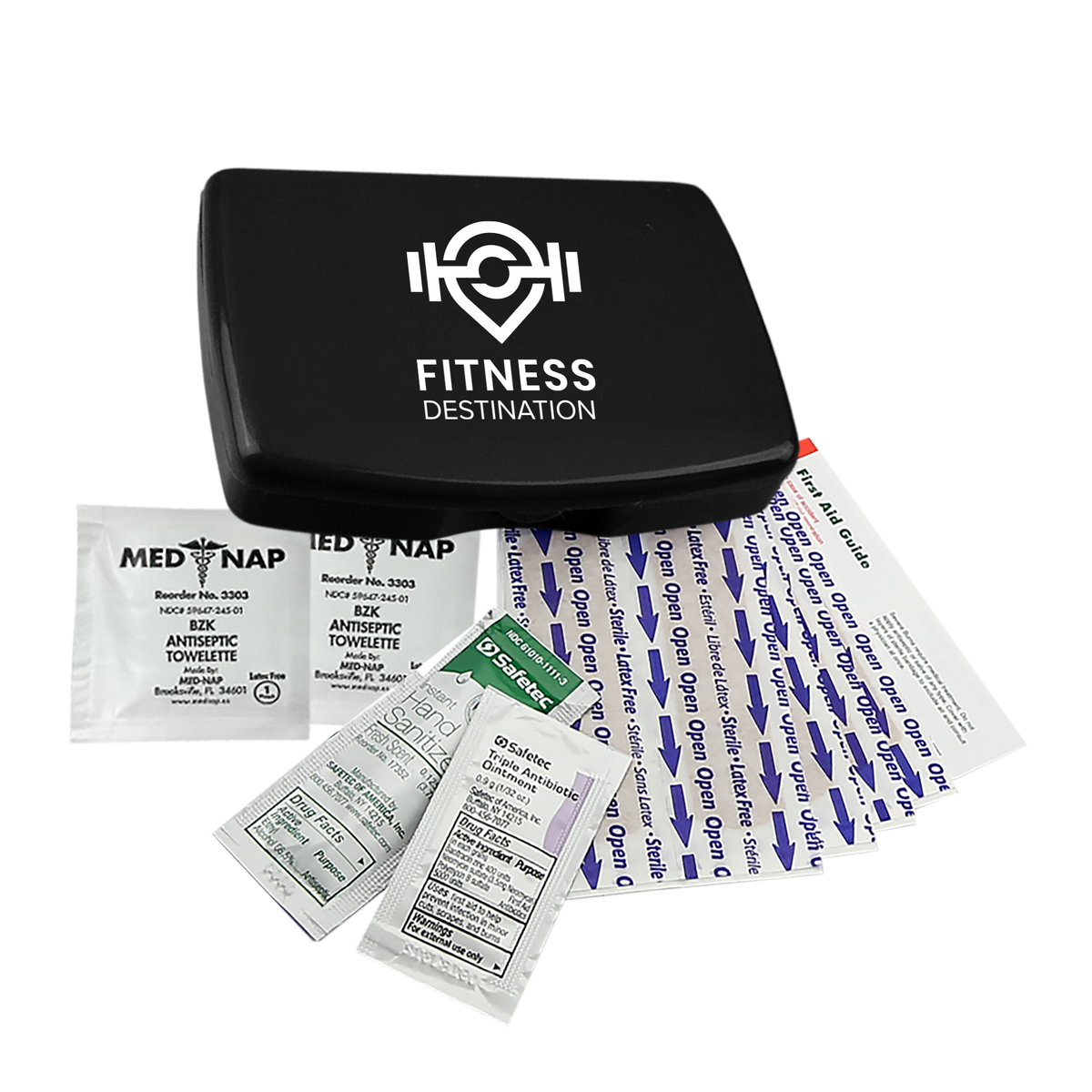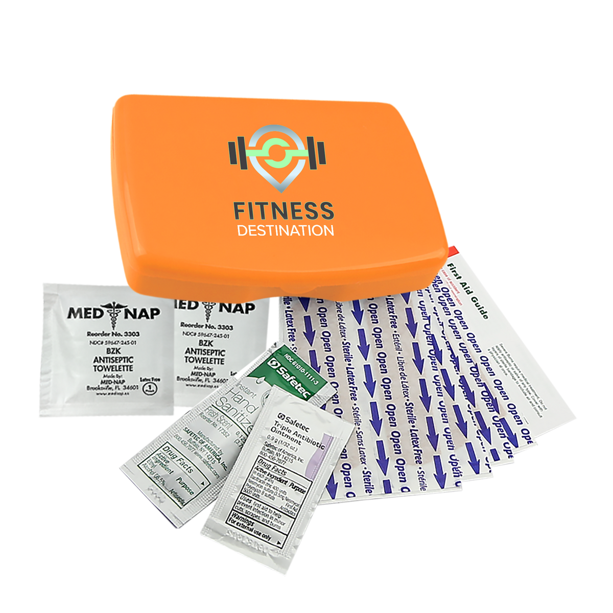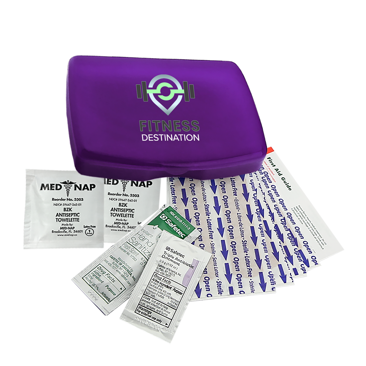 Be prepared for everyday scrapes and bumps with this compact and portable first aid kit. It includes eight adhesive bandages, two antiseptic towelettes, a hand sanitizer packet, a triple-antibiotic ointment packet, and a first aid guide for added peace of mind. Easy to store in a backpack, purse, or glove compartment, it’s a smart choice for travel, outdoor activities, or everyday use.