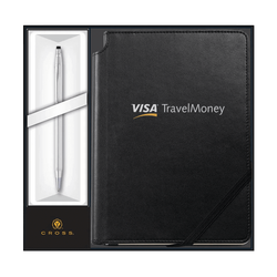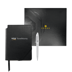 The Cross Calais and Journal set is an elegant and timeless way of showing appreciation or marking a milestone in life. The set includes the Cross Calais Ballpoint pen (multiple colors available) and the Cross Journal, featuring a quality leatherette finish and an elastic closure and ribbon page marker.