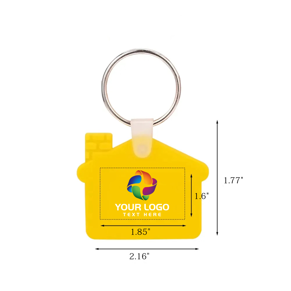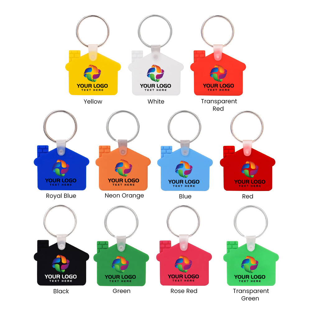 These house-shaped silicone key tags are meticulously designed to combine durability, functionality, and visual appeal, making them an excellent choice for both personal use and promotional purposes. Crafted from silicone. Each key tag features an easy-to-operate snap-clip, allowing for effortless attachment and detachment from keys, bags, or other items, while the metal split key ring adds an extra layer of reliability, ensuring your keys stay securely in place. Perfect for businesses or organizations looking to launch affordable yet impactful promotional campaigns, these advertising key tags offer a creative and practical way to increase brand visibility and engagement. Whether distributed at events, included in promotional giveaways, or used as part of a marketing strategy, these house-shaped silicone key tags are a versatile and cost-effective solution that combines functionality with a delightful design, making them a standout choice for any promotional activity.