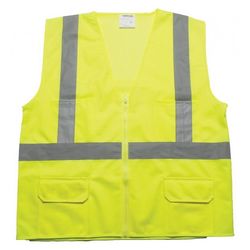 Stay safe and organized on the job with this high-performance ANSI Class 2 Safety Vest. Built from 100% polyester mesh for breathability and comfort, it features a solid front panel made from ANSI-rated polyester for added durability. The 2" reflective tape ensures high visibility in low-light conditions, while the zippered front closure and four convenient pockets (two at the waist and two at the chest) keep tools, pens, and essentials within easy reach. Available in assorted sizes, this vest is a smart choice for crews who need reliable safety gear that works as hard as they do.