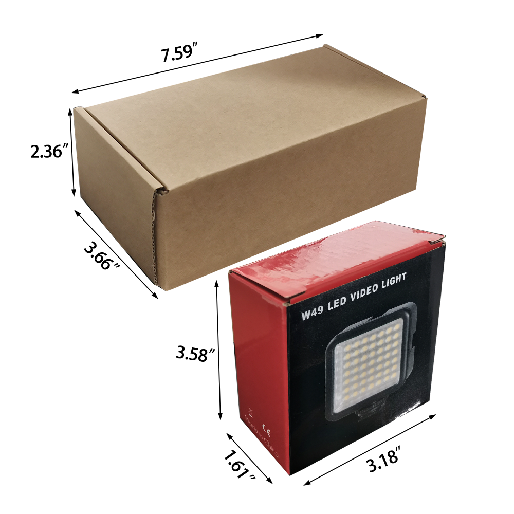 The dimmable light panel has 49 LEDs, and 3 extra cold shoe mounts for installing more video lights and accessories.