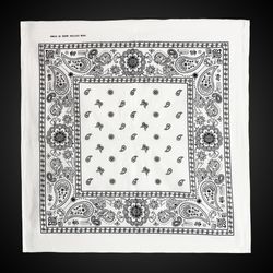 White cotton bandana, 22" x 22". Priced per bandana but please order increments of 1 dozen.