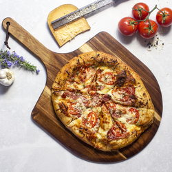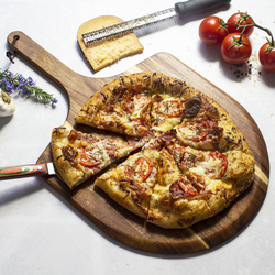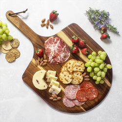 Replicate the genuine pizza-making experience at home with the Totally Bamboo Rock & Branch Series Acacia Pizza Peel. This beautiful wood pizza peel is ideal for transferring homemade pizzas, pastries, breads and more to and from the oven. Hand wash only; do not leave in oven.
